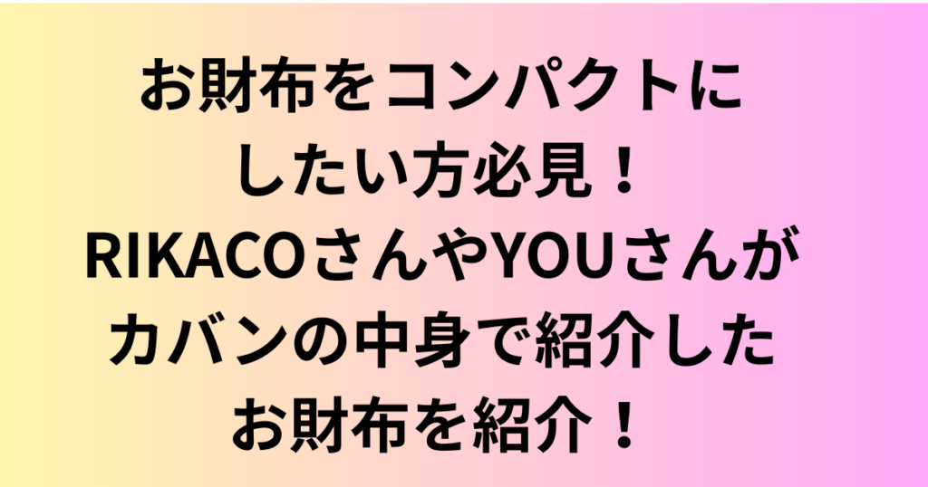 キャッシュレスの時代ですが、お財布をコンパクトにしたい方は多いのではないでしょうか? 芸能人のカバンの中身で紹介された、RIKACOさんとYOUさんのお財布を紹介します。 RIKACOさんが紹介されたcarmaine (カーマイン)のお財布は私自身が購入したので... -